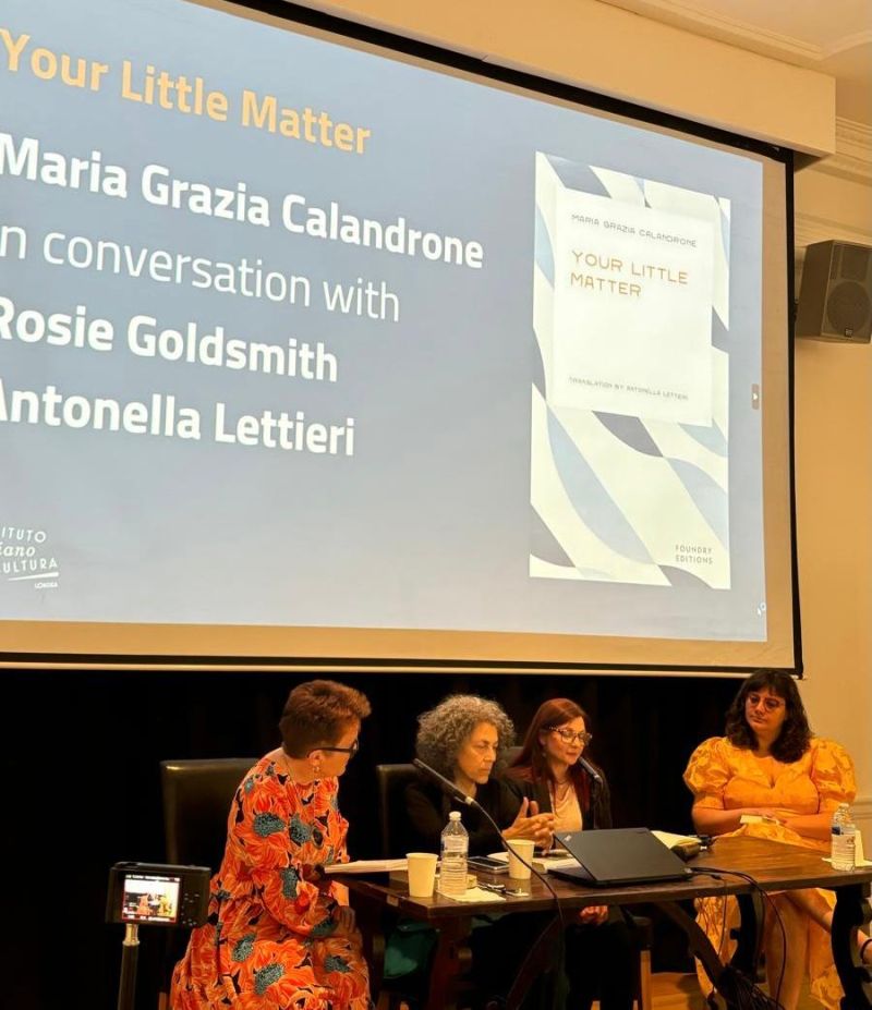 L’Istituto ha accolto Maria Grazia Calandrone per la presentazione della traduzione inglese del suo libro "Dove non mi hai portata" (Your Little Matter). In conversazione con Rosie Goldsmith e Antonella Lettieri per Foundry Editions, Calandrone ha approfondito il viaggio personale e universale che anima la sua opera, esplorando il delicato intreccio di memoria, identità e radici.