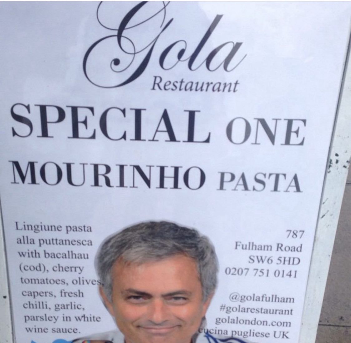 “All’epoca non avevo ancora la licenza,” racconta Aaron, “ma un giorno appresi che José Mourinho sarebbe diventato il nuovo allenatore del Chelsea. Così, presi la sua faccia e la stampai sulla lavagna degli special fuori dal locale, intitolandola: Special ONE”. Quella lavagna non passò inosservata. Una sera, fuori dal ristorante, un Mercedes nero si avvicinò. “Si abbassò il finestrino e un uomo, con accento italiano incerto, mi disse qualcosa tipo ‘Tu devi pagarmi bla bla bla!’ Io non capii chi fosse, lo mandai aff…o, sorridendo”.