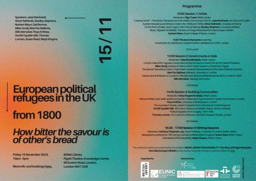 Per prendere visione del programma completo del panel “European political refugees in the UK. From 1800. How bitter the savour is of other's bread” e prenotare, cliccare qui.