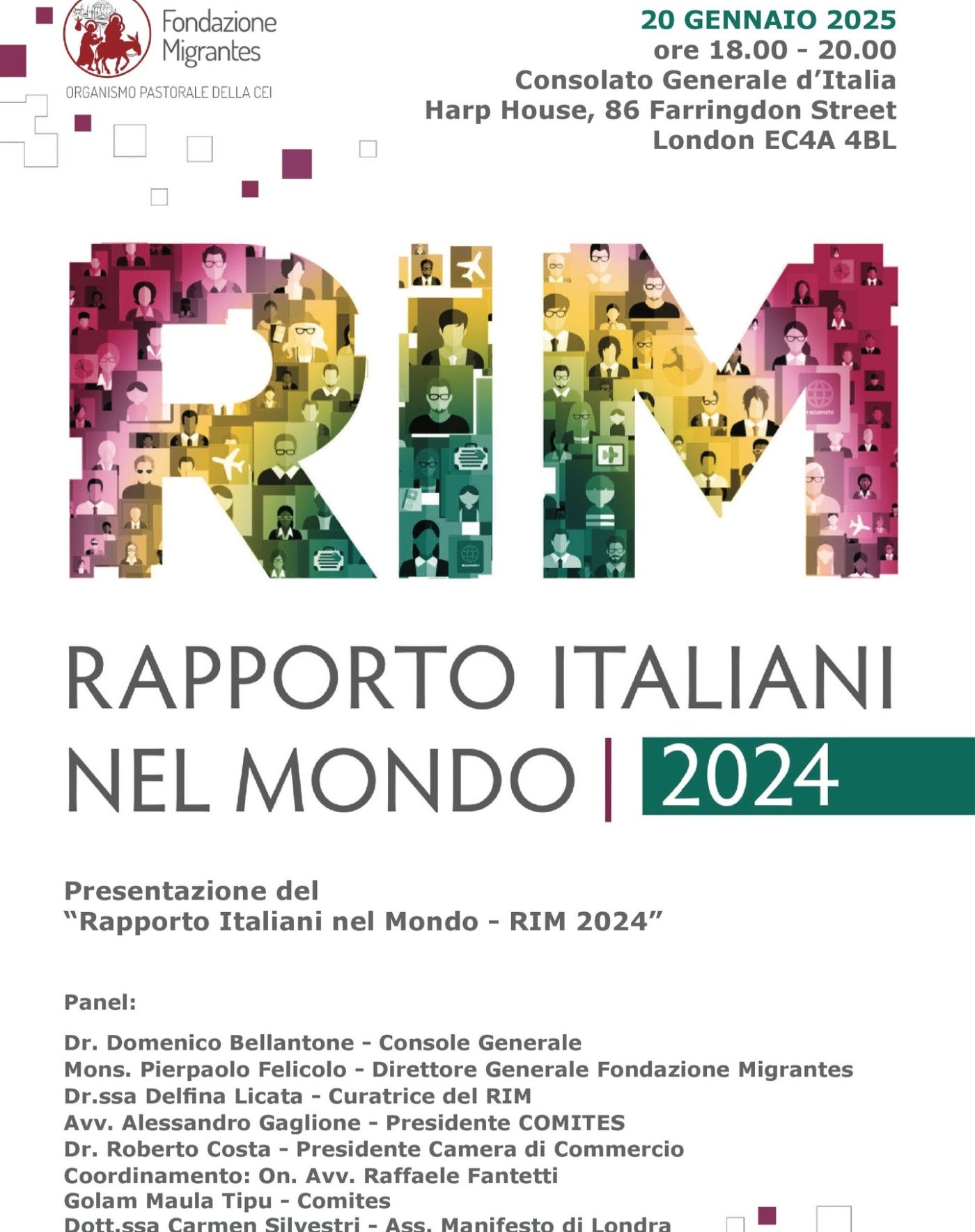 Il 20 gennaio 2025, dalle ore 18.00 alle 20.00, presso il Consolato Generale d’Italia a Londra, si terrà la presentazione del Rapporto Italiani nel Mondo 2024, un appuntamento imperdibile per la comunità italiana nella capitale britannica. L’evento, organizzato per il secondo anno consecutivo, offre un'occasione unica per esplorare le tematiche chiave legate alla mobilità e alla vita degli italiani all’estero, con particolare attenzione alle dinamiche attuali che riguardano la nostra comunità.