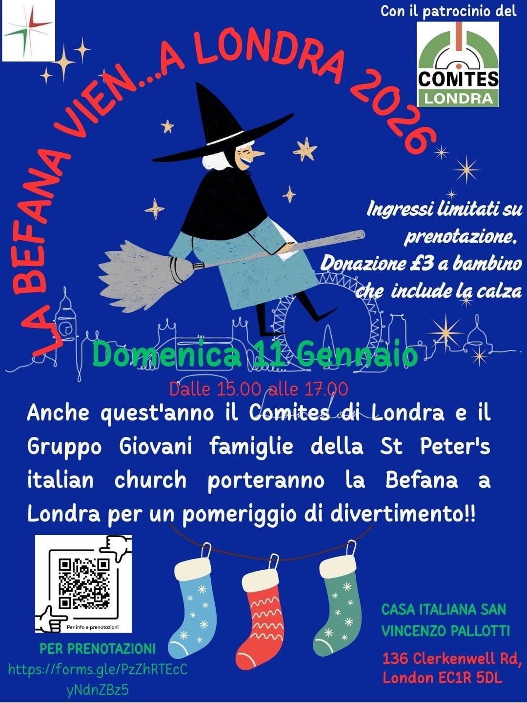 Con l’arrivo dell’Epifania si rinnova una delle tradizioni più amate dalle famiglie italiane: domenica 11 gennaio 2026, la Befana scende a Londra per portare dolci, sorrisi e un pomeriggio di festa dedicato ai più piccoli. Organizzato dal Gruppo Giovani Famiglie della St. Peter’s Italian Church in collaborazione con il Comites di Londra, l’evento unisce comunità italiane e internazionali in una celebrazione giocosa, aperta a tutti i bambini e alle loro famiglie.
