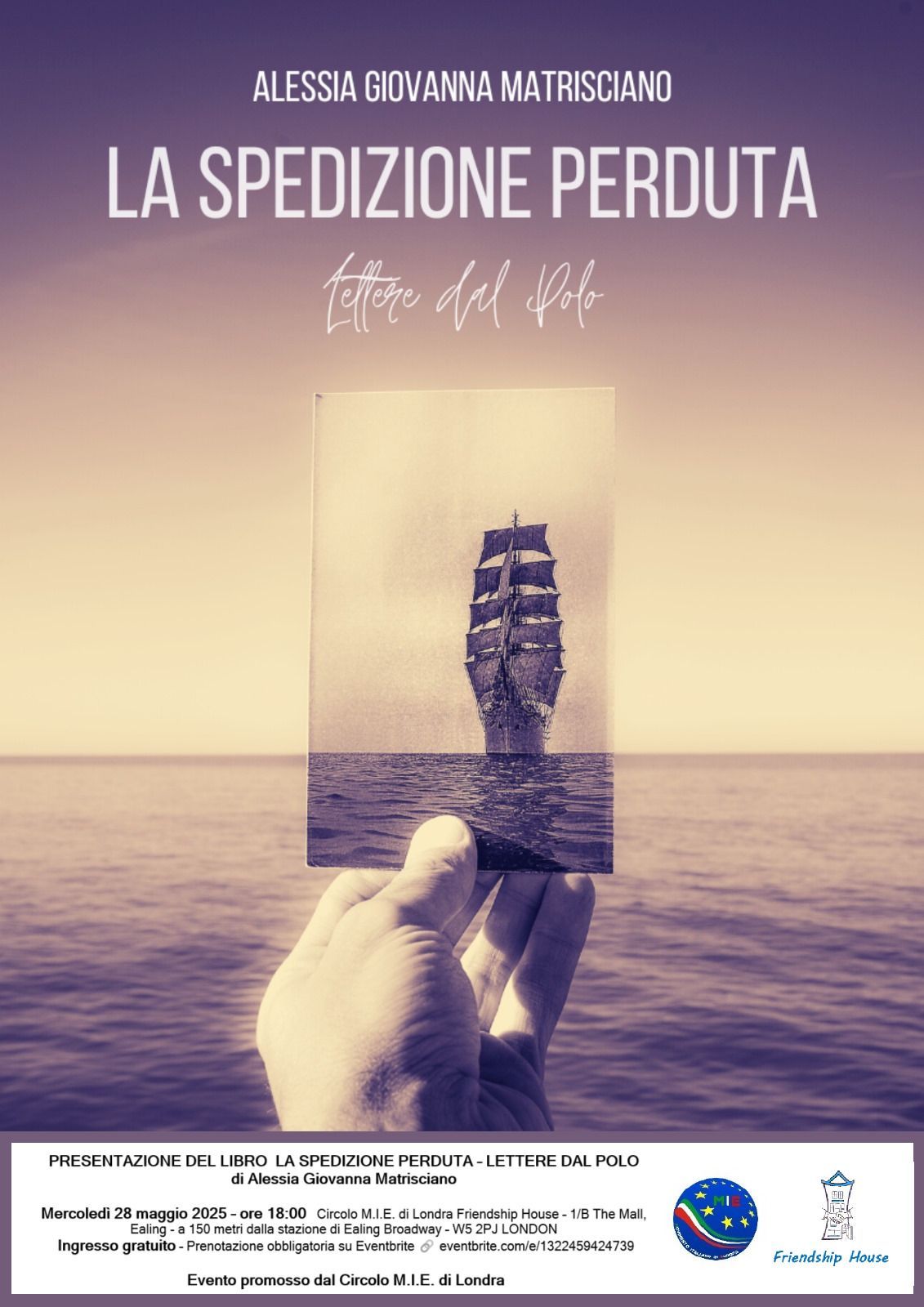 Un appuntamento da non perdere per gli amanti della storia, della letteratura e dei grandi misteri dell’umanità: mercoledì 28 maggio 2025 alle ore 18:00, il Circolo M.I.E. di Londra ospiterà la presentazione del libro "La Spedizione Perduta – Lettere dal Polo" della scrittrice e storica Alessia Giovanna Matrisciano.