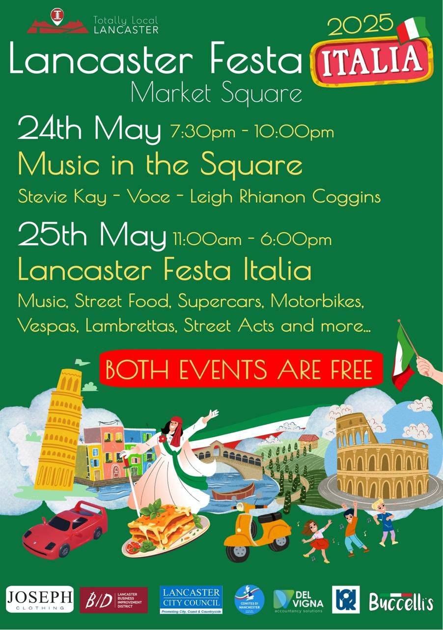 La città di Lancaster si prepara a tingersi dei colori della bandiera italiana per un weekend all'insegna della musica, del cibo di strada e dei motori iconici. Il 24 e 25 maggio, il centro cittadino ospiterà Festa Italia, un evento gratuito che celebra tutto ciò che rende la cultura italiana così amata in tutto il mondo.