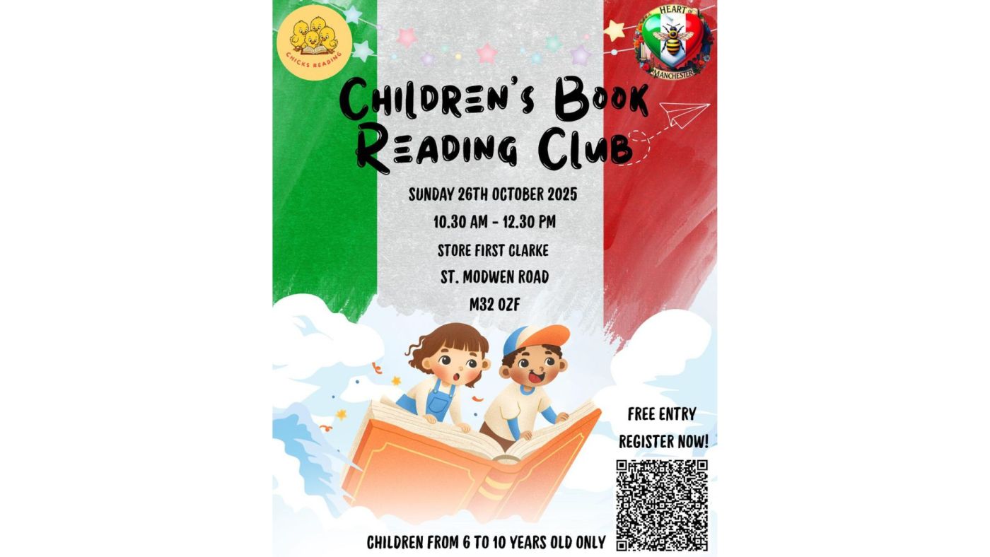 A Manchester nasce nel 2025 un nuovo Club di Lettura dedicato ai più piccoli. L’iniziativa, organizzata da Chicks Reading e Heart of Manchester, mira a far conoscere ai bambini tra i 6 e i 10 anni la cultura italiana attraverso storie e racconti selezionati. Il club si riunirà una volta al mese, offrendo un momento speciale in cui i più giovani potranno avvicinarsi ai libri in un ambiente accogliente.