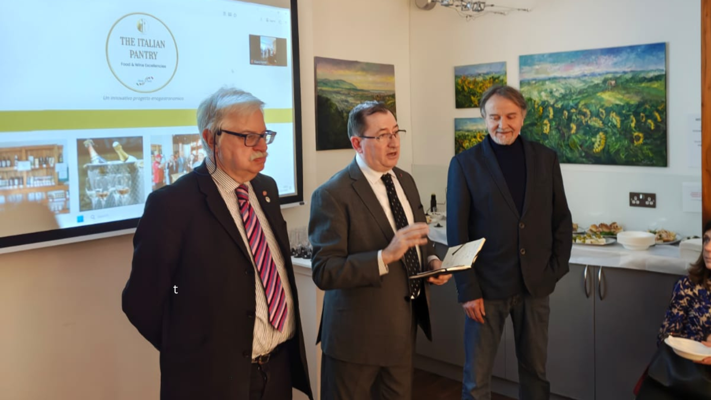 Ad aprire l'evento è stato il Cav. Avv. Valeriano Drago, Presidente del Circolo MIE, che ha illustrato gli obiettivi del progetto: installare in spazi culturali o commerciali una "credenza italiana" – vetrina permanente di prodotti agroalimentari di eccellenza – per offrire ai piccoli produttori italiani un accesso diretto e sostenibile al mercato britannico. TIP è infatti pensato non solo come spazio espositivo e punto vendita, ma anche come luogo di narrazione, degustazione e relazione culturale.