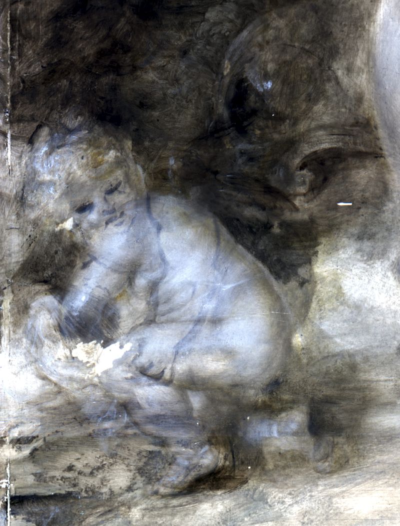 È stato eseguito anche un importante lavoro strutturale per stabilizzare il pannello di quercia. Un esame approfondito del supporto ausiliario del dipinto, combinato con la nostra conoscenza della provenienza del quadro, ha determinato che la "culla" è probabilmente stata creata da Jean-Louis Hacquin (il "padre" della "culla regolabile"), che nel 1770 è noto per aver lavorato su un altro pannello di Rubens con una provenienza simile attraverso la famiglia reale francese. Queste prove storiche, insieme alle condizioni relativamente buone del pannello, hanno convinto il conservatore ad adattare il supporto della culla sostituendo le stecche verticali con coppie di stecche più sottili per consentire un certo grado di flessibilità e evitare future spaccature, invece di sostituire completamente l'intera struttura.
