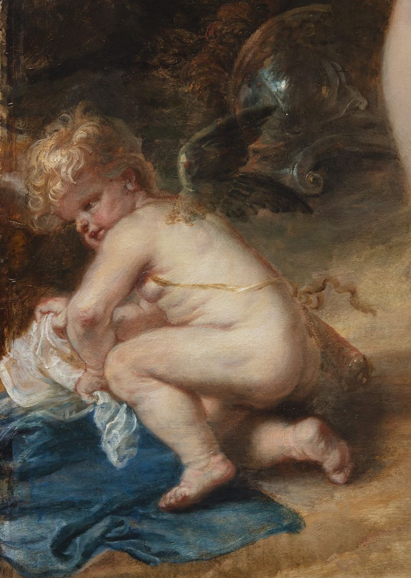 Le analisi delle sezioni trasversali del dipinto hanno mostrato quali modifiche o pentimenti furono fatti da Rubens stesso e quali aggiunte successive furono fatte da altri artisti o conservatori, poiché le modifiche successive furono fatte sopra uno strato di vernice. È stato anche possibile determinare i pigmenti usati: lo smalto, un blu che con il tempo sbiadisce al grigio, è visibile nel cielo di Rubens. Si è scoperto che Rubens ha usato anche l'ultramarino più costoso, nel mantello blu di Venere.
