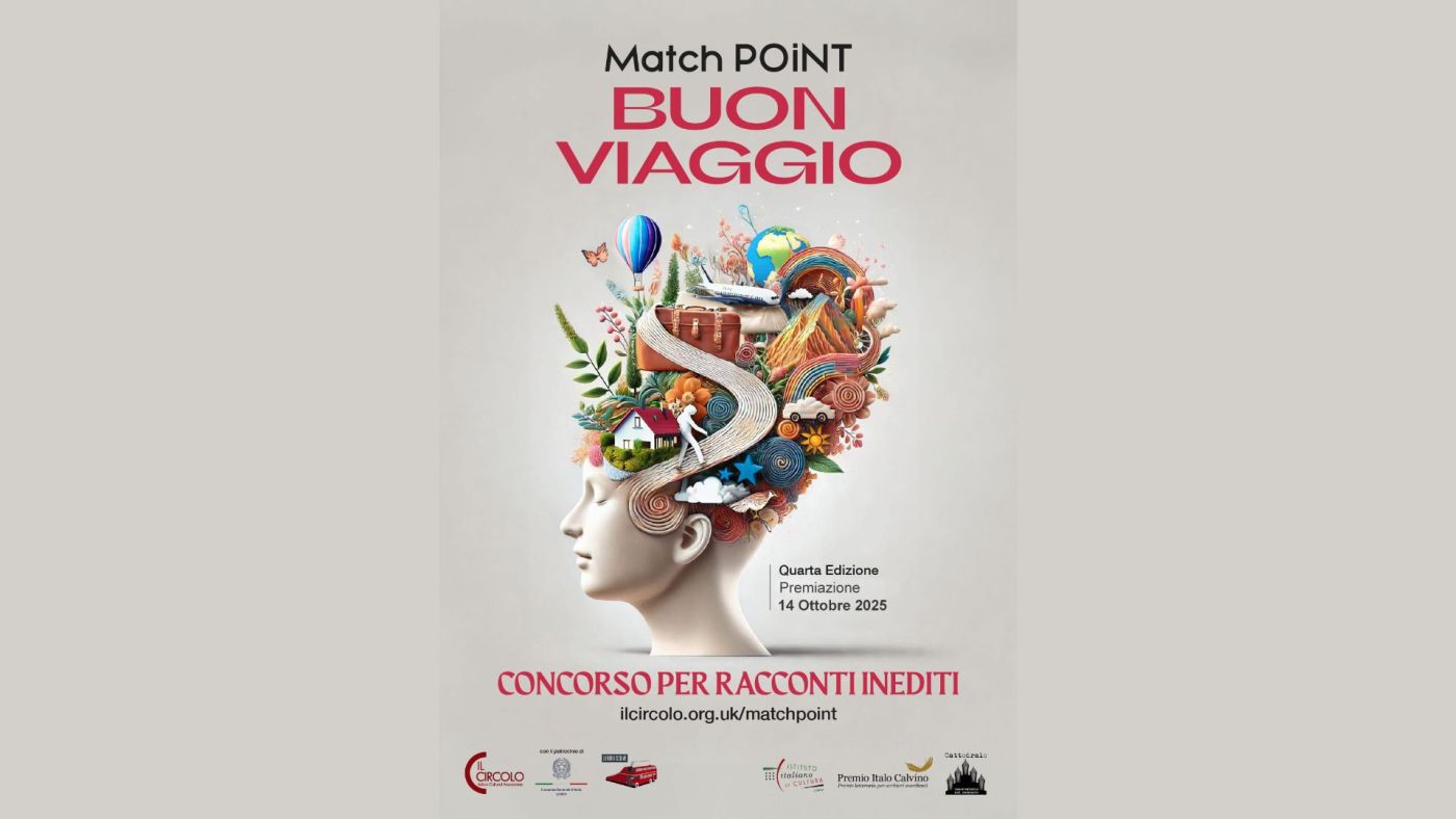 Un viaggio può iniziare da un biglietto aereo, da un treno in partenza o semplicemente da una pagina bianca. È proprio questa l’idea al centro della quarta edizione di Match Point – Buon Viaggio, il concorso letterario promosso da Il Circolo – Italian Cultural Association di Londra, con il patrocinio del Consolato Generale d’Italia a Londra e il sostegno di prestigiose istituzioni culturali come l’Istituto Italiano di Cultura e il Premio Italo Calvino.