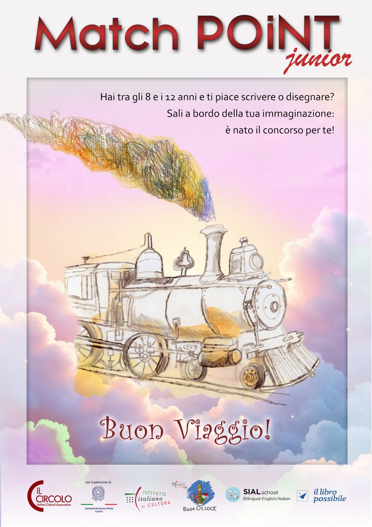 Questa edizione sarà particolarmente speciale: BOOK O’CLOCK collabora per l’occasione con Il Circolo all’interno del concorso artistico-letterario “MatchPoint Junior”, rivolto a bambini e bambine tra i 4 e i 12 anni residenti nel Regno Unito. Il concorso, il cui tema è il viaggio, invita i partecipanti a esprimere la propria creatività attraverso racconti illustrati o opere grafiche.